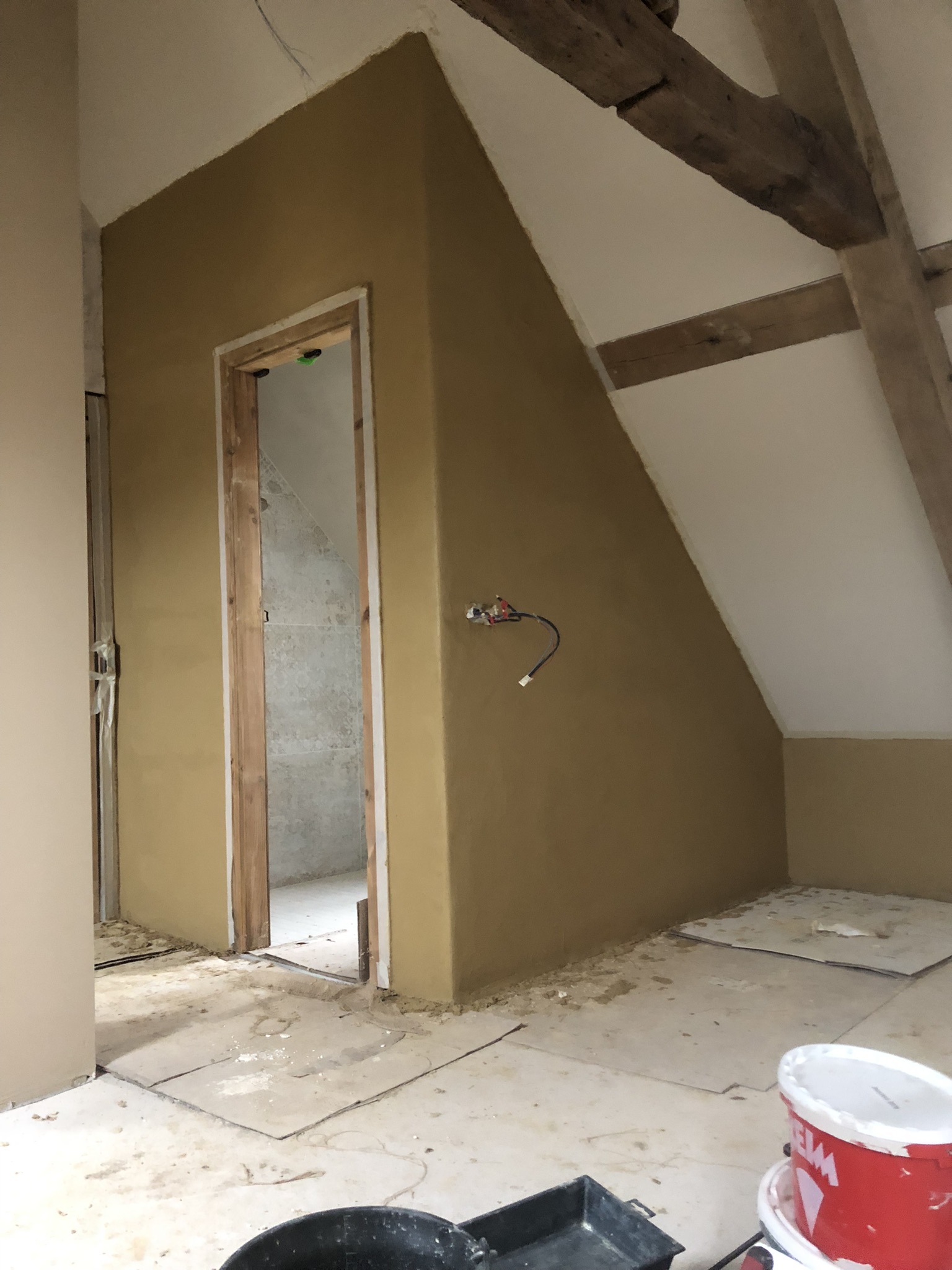 Enduit de finition à l’argile sur différents supports : torchis et fermacell